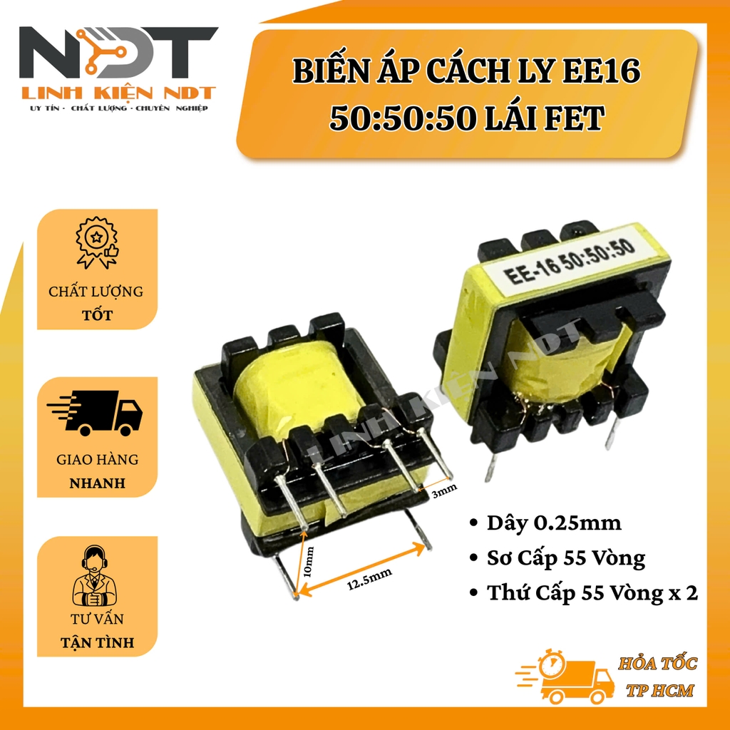 Biến áp cách ly EE16 Mosfet là loại biến áp xung chuyên dụng cho các mạch điều khiển Mosfet, giúp cách ly tín hiệu giữa mạch công suất và mạch điều khiển, đảm bảo an toàn và ổn định. Sản phẩm có thông số vòng dây 50:50:50, đáp ứng chính xác yêu cầu truyền xung điều khiển.