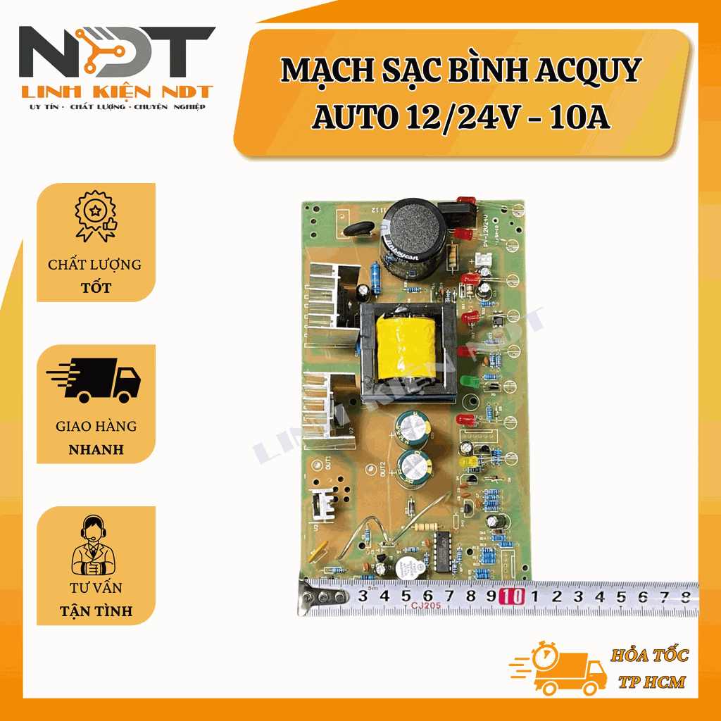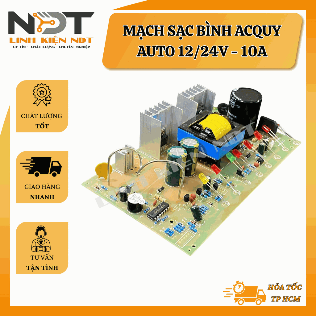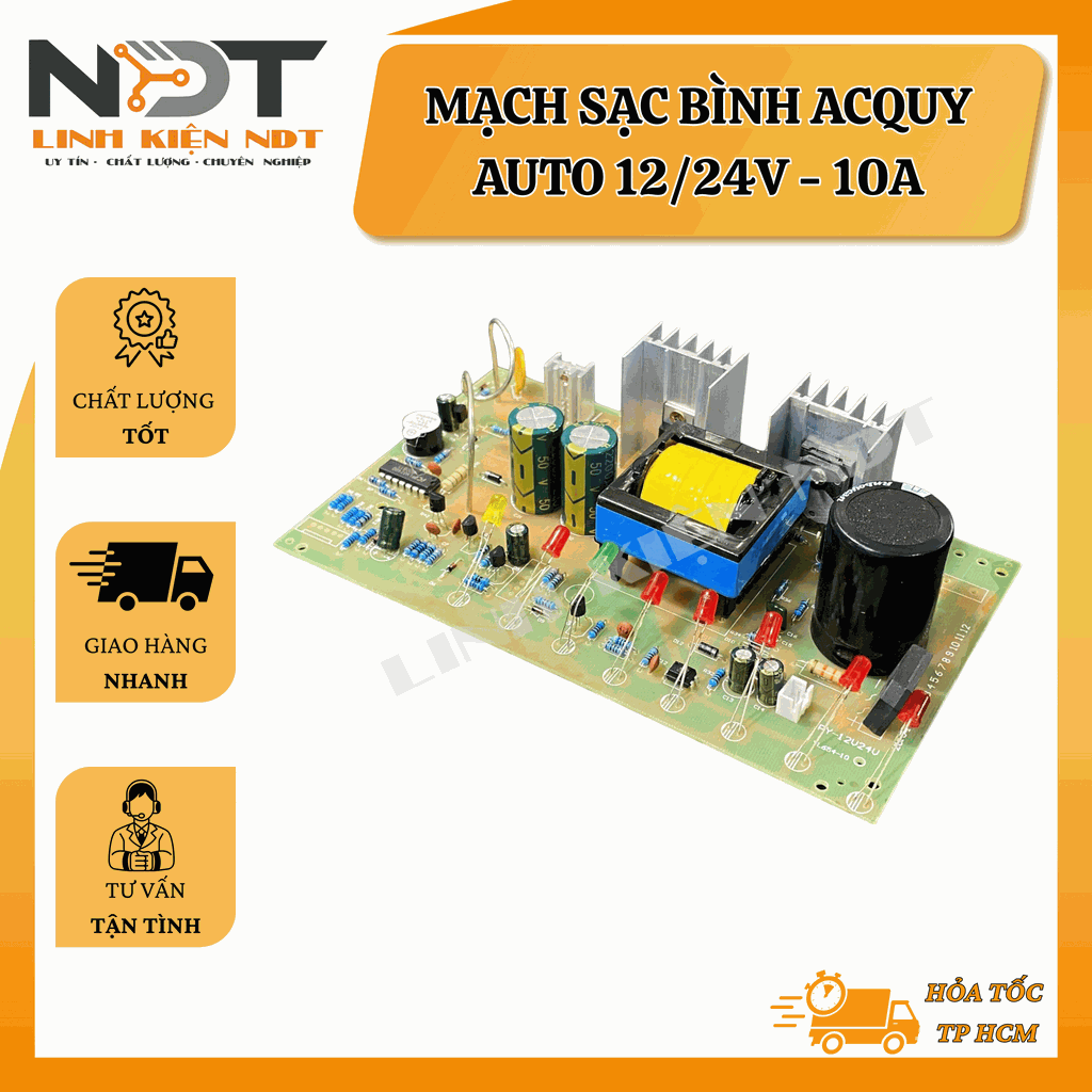 Mạch sạc acquy tự động 12/24V 10A hỗ trợ sạc 3 giai đoạn thông minh, giúp nạp điện nhanh, đầy và an toàn cho bình. Sản phẩm thích hợp cho các loại acquy chì-axit, acquy khô, và một số loại acquy gel. Tự động nhận diện điện áp bình, điều chỉnh dòng sạc phù hợp, bảo vệ bình và kéo dài tuổi thọ.