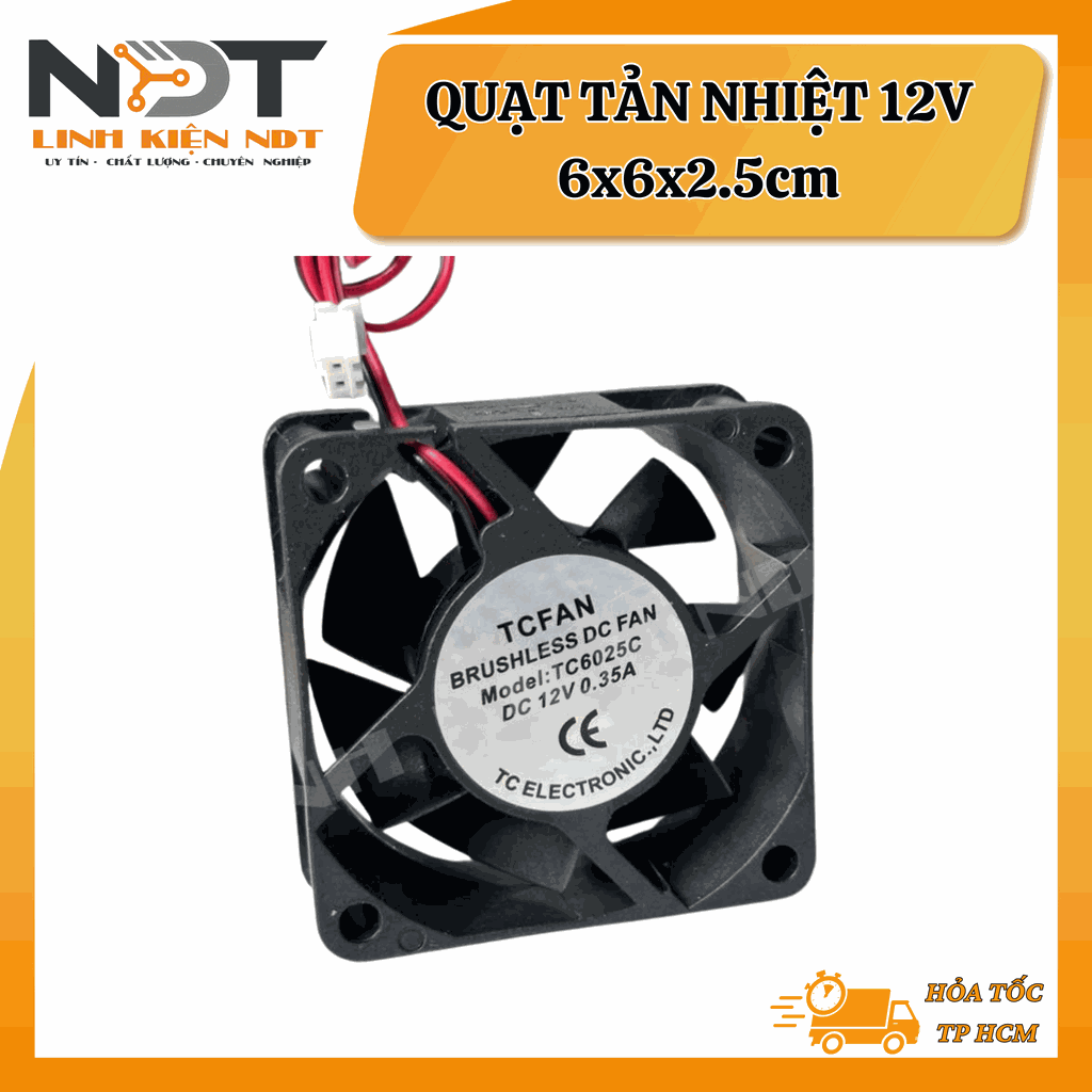 Quạt tản nhiệt 12V 6×2.5cm 0.30A được thiết kế chuyên dụng để làm mát các thiết bị điện tử, nguồn xung, máy in 3D, inverter, và các mạch công suất. Với lưu lượng gió mạnh, hoạt động ổn định và độ ồn thấp, sản phẩm giúp tăng tuổi thọ và đảm bảo hiệu suất cho thiết bị.