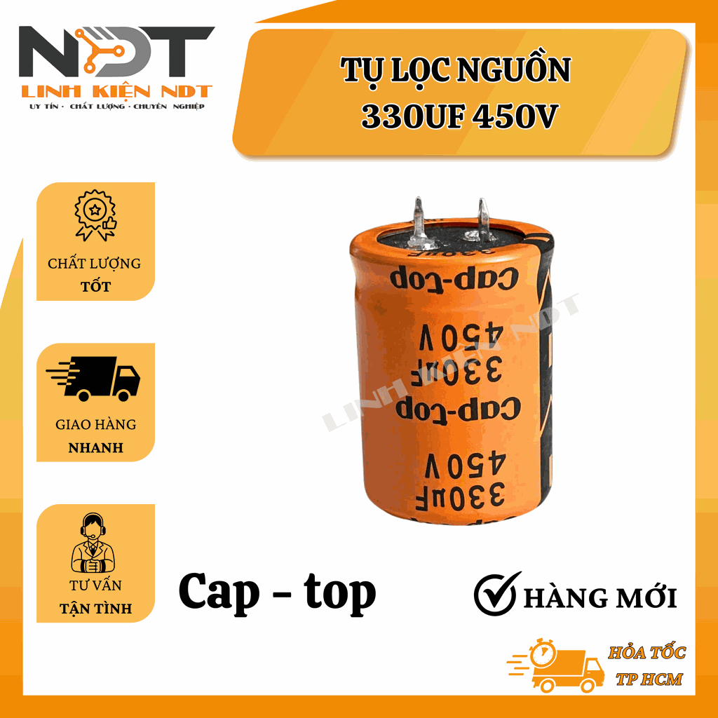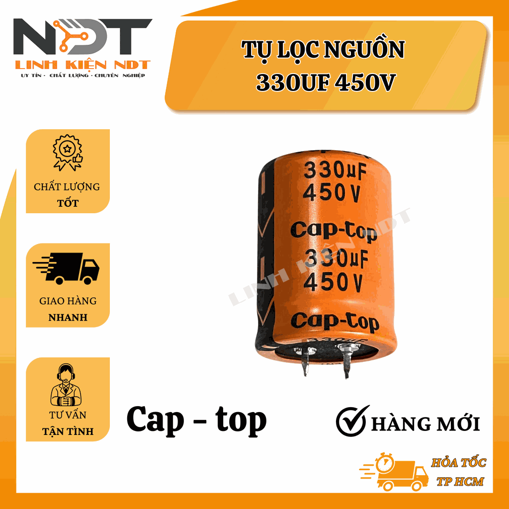 Tụ hoá 330uF 450V là loại tụ điện phân cao áp, chuyên dùng để lọc nguồn trong các thiết bị điện tử, mạch nguồn xung, ampli công suất, và các hệ thống điện cần độ ổn định cao. Sản phẩm đảm bảo chất lượng, dung sai thấp, chịu áp và chịu nhiệt tốt.